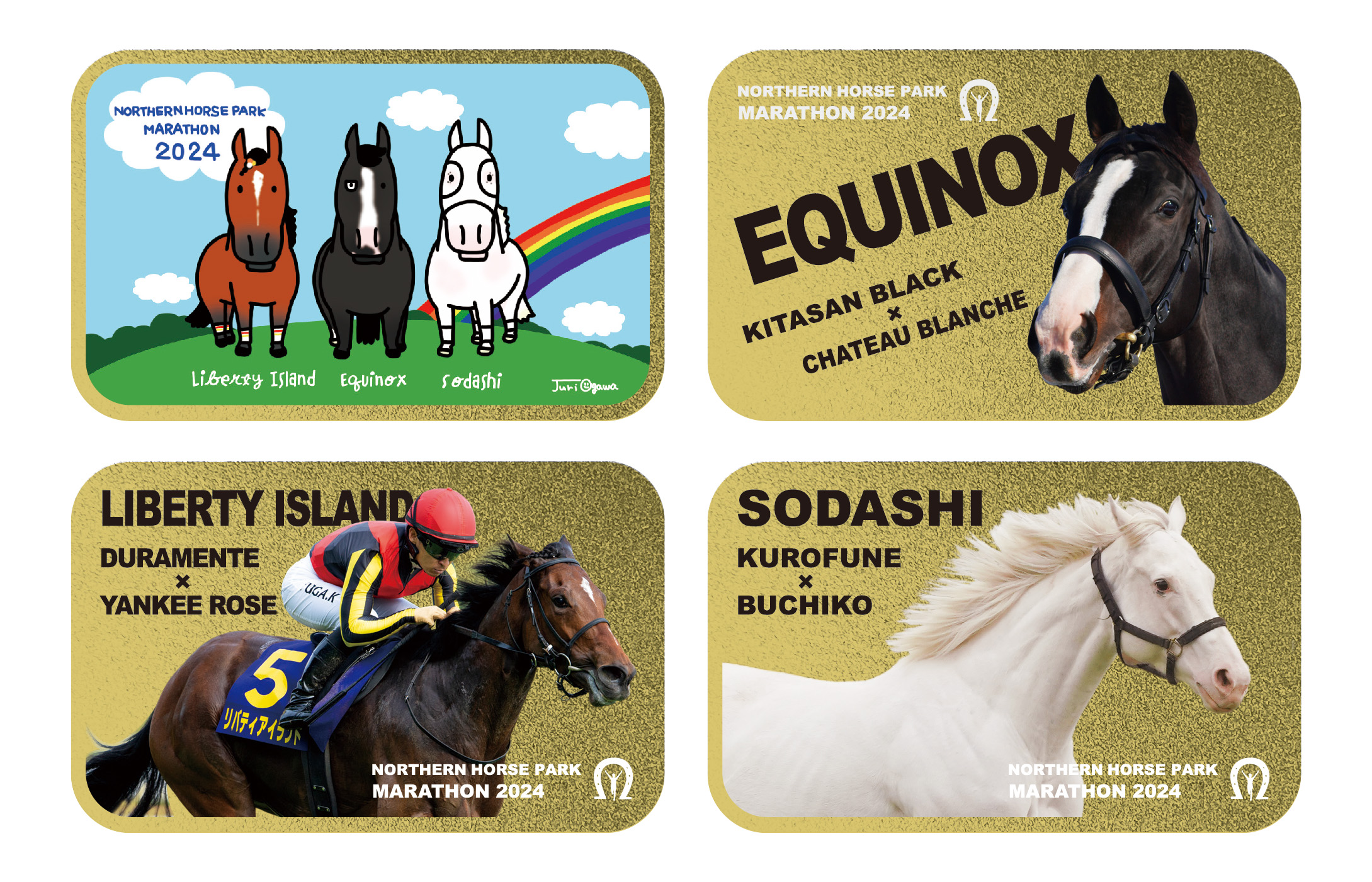 | 参加賞 | オンラインマラソン限定「スライド缶セット(イクイノックス、リバティアイランド、ソダシ、おがわじゅりさんオリジナルイラストの4缶)」(非売品)  |